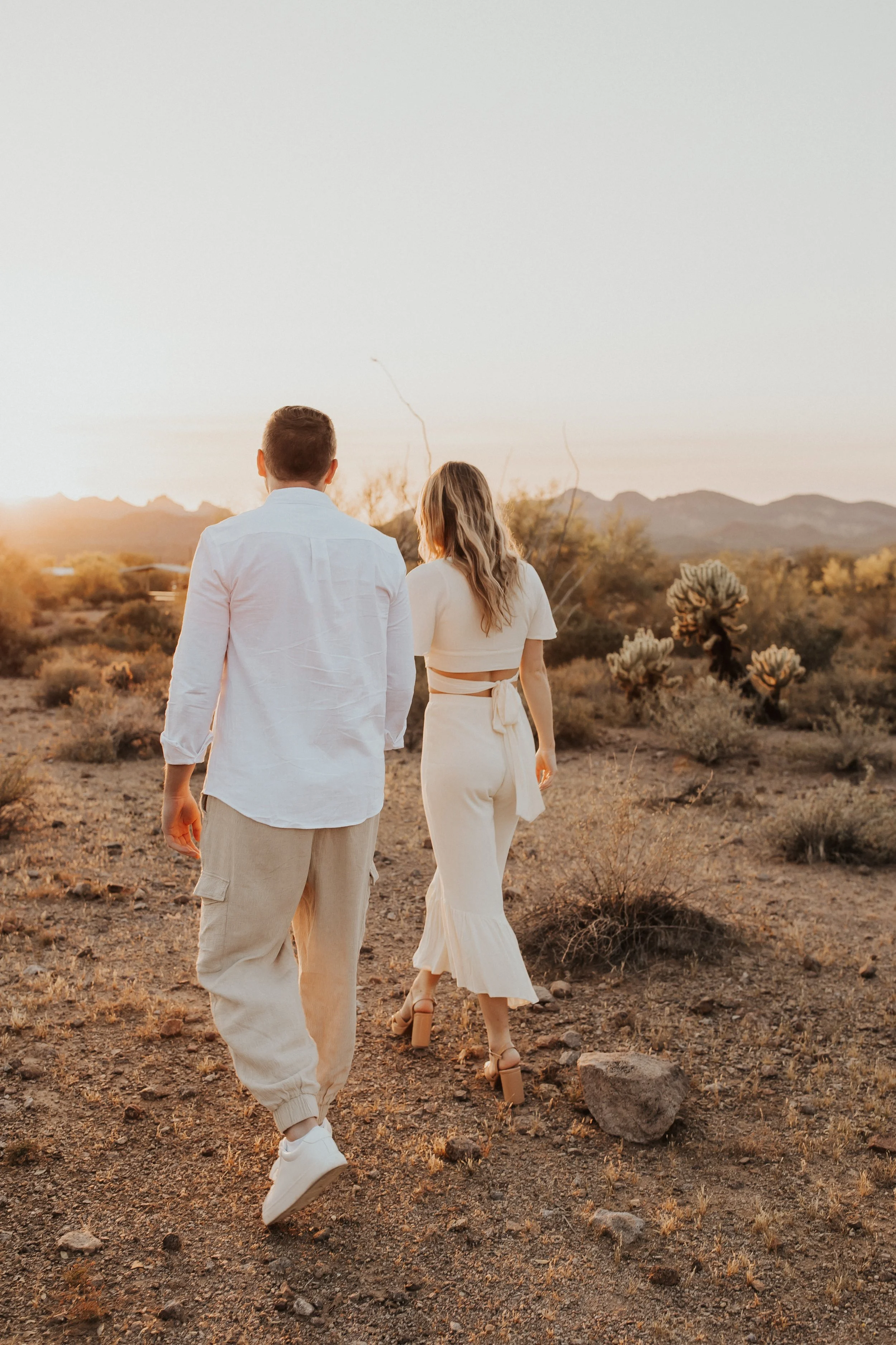 I traveled to Scottsdale, Arizona for my best friends bachelorette party and we KNEW that we needed to squeeze in a desert photoshoot while we were out there. Two best friends that are photographersβ¦ itβs a given right!? We found Dana and Brenden on Instagram and styled them for a bridal/ engagement photoshoot look.