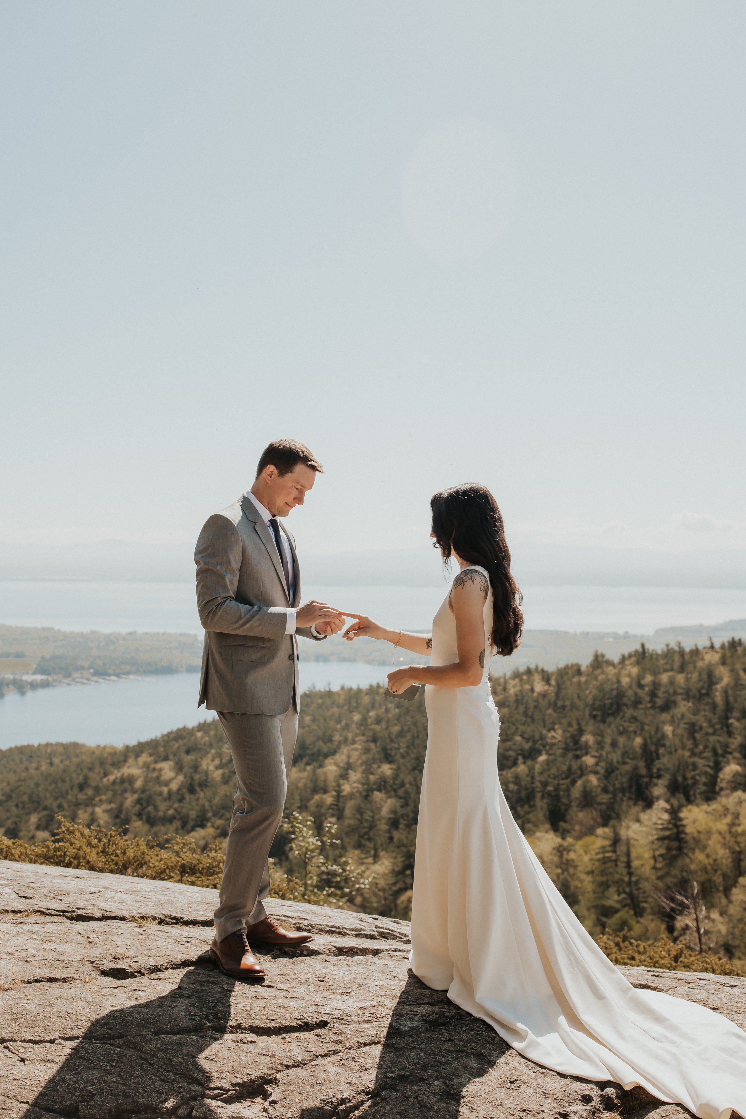 Jenny and Dennis tied the knot on May 14th in the Adirondack Mountains. We hiked up the mountain early in the morning, hung their wedding outfits from tree branches, they changed behind a rock , and said their vows intimately. It was one of the most special, genuine and raw elopements I was lucky enough to witness. After they exchanged rings, Dennis screamed to the mountaintops βweβre married!!!β and I definitely got chills! Dennis also had special songs for her to βwalk down the aisleβ to, and for them to make their first walk together as one. They did a little first dance together, shared a bottle of Prosecco while overlooking the beautiful views and it was pure magic.